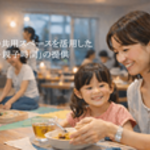 共働き子育て家庭を主な対象とし、集合住宅の共用スペースを活用した食事提供と親子向けアクティビティの提供に取り組みます。食事は栄養管理士の監修のもと、集会所内のキッチンスペースで調理した栄養バランスの取れた温かい食事を提供して親の家事負担を軽減するとともに、親子アクティビティの提供により親が子どもに関われる時間の創出を図ります。親子アクティビティでは「お米の重量当てクイズ」、「野菜の切れ端を使ったお絵描き」などの食育体験、生成AIを活用したキャラクター作りといった学びにつながるアクティビティを実施します。現在、豊中市内の集合住宅1拠点にて月2回のペースで実施しており、今後他拠点への展開も行います。また、地域飲食店や教育関連企業との連携を図り、持続可能な運営体制の構築に取り組みます。