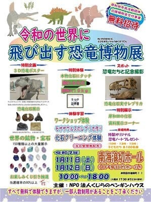 2025年の緊急企画イベントでは入場無料「令和に飛び出す恐竜博物展」を開催し1651名の来場者に想い出作りを体験してもらいました。さらに、さらに、沢山の活動を皆さんとやっていきたいです。応援よろしくお願いします。